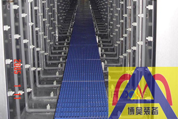 3、輸送鏈在室體內(nèi)運行,頂部懸掛輸送鏈開口處設保護罩及正壓式風幕封氣裝置,防止對懸鏈腐蝕。