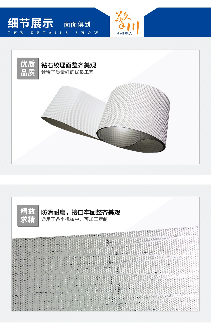 ![]() | 嚴(yán)密輸送帶品質(zhì)檢測(cè)監(jiān)控 質(zhì)量保障 ? 嚴(yán)格把控食品輸送帶生產(chǎn)、加工,可提供原料檢測(cè)報(bào)告;擎川食品輸送帶能夠滿足FDA食品安全檢測(cè) 自主創(chuàng)新研發(fā)工藝 經(jīng)驗(yàn)豐富 ? 擁有先進(jìn)的真空拉膜帶加工車間,團(tuán)隊(duì)加工技術(shù)熟練,可專業(yè)應(yīng)對(duì)各種特殊定制加工 |