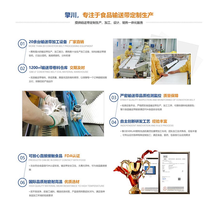 廣州擎川機(jī)電設(shè)備有限公司成立于2007年, 創(chuàng)立自有品牌EVERLAR,是一家集合研制、設(shè)計(jì)、加工為一體的工業(yè)皮帶特殊加工公司,主要經(jīng)營各類輸送帶、同步帶、平面帶、特殊皮帶加工服務(wù)(表面加工海綿、泡棉、紅膠、PU、PVC花紋、各種異形檔塊、打孔等),產(chǎn)品被廣泛應(yīng)用在食品、日化、醫(yī)藥、木工、印刷、包裝等行業(yè)……【查看更多】 |