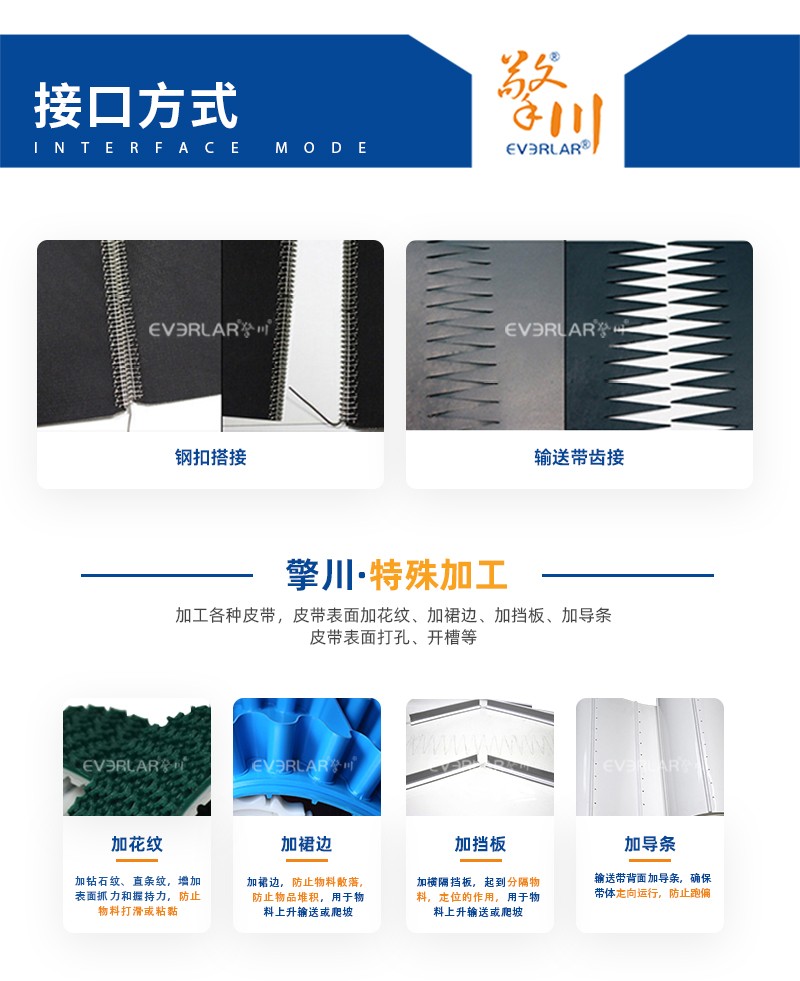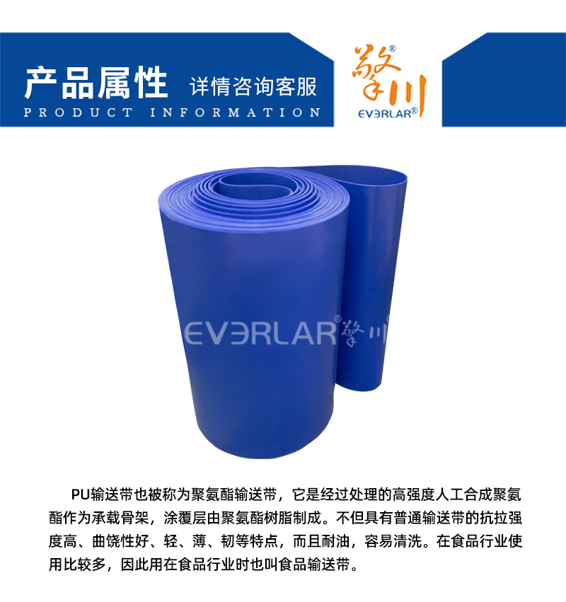 本樣品是易清潔輸送帶,用于食品機械中,用于輸送平時提升,加裙邊,可以大量的去輸送物品,輸送粉類、肉類等物品。我公司的加工的工業皮帶,長度和寬度可根據客戶要求定制,也可以根據客戶需要都皮帶進行特殊加工,可加導條,加擋板、擋塊或者加膠等。