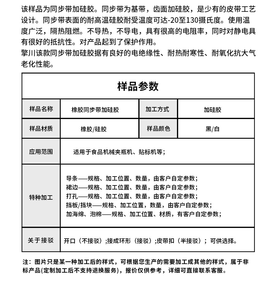 樣品名稱 | 橡膠同步帶加硅膠 | 加工方式 | 加硅膠 |