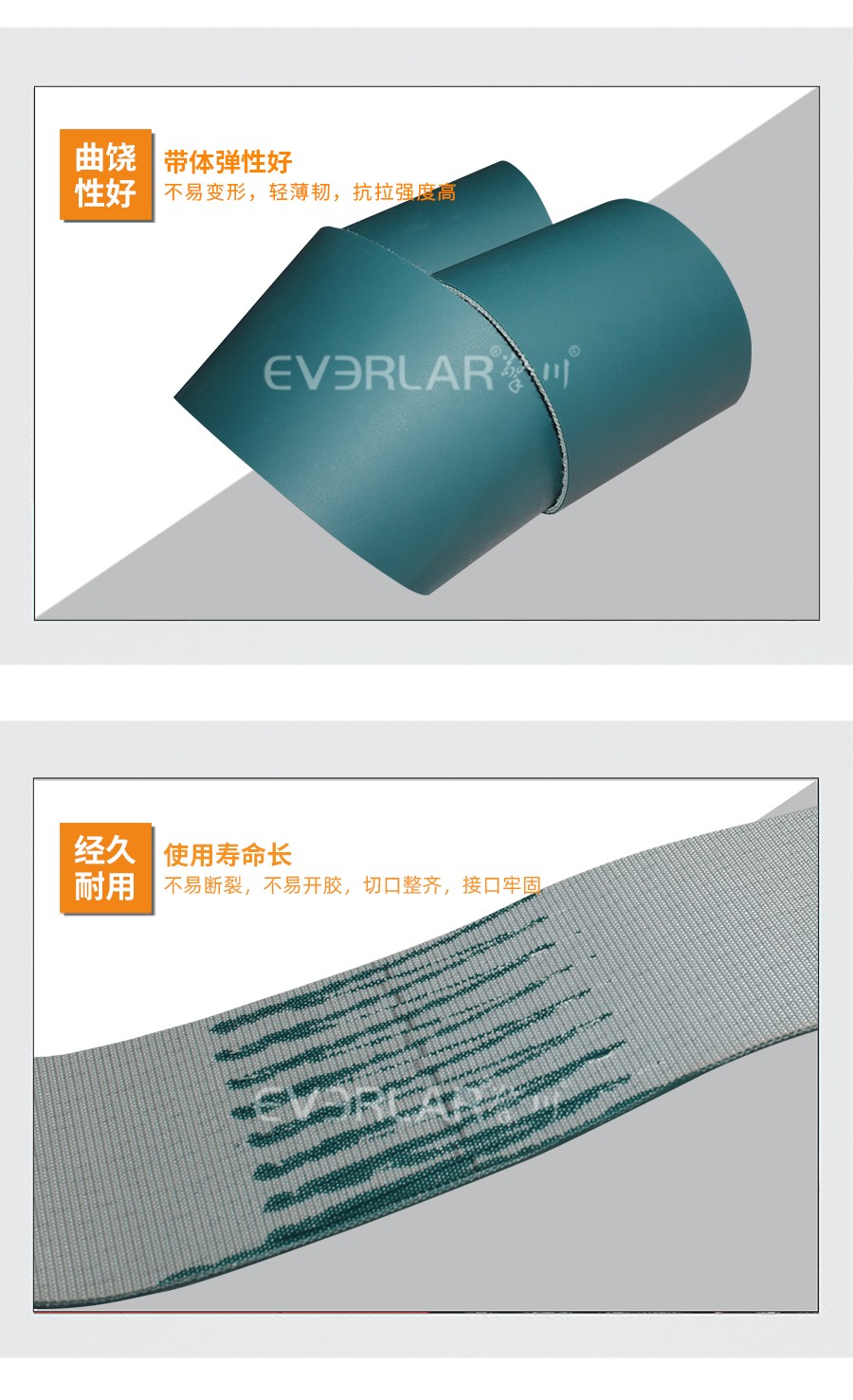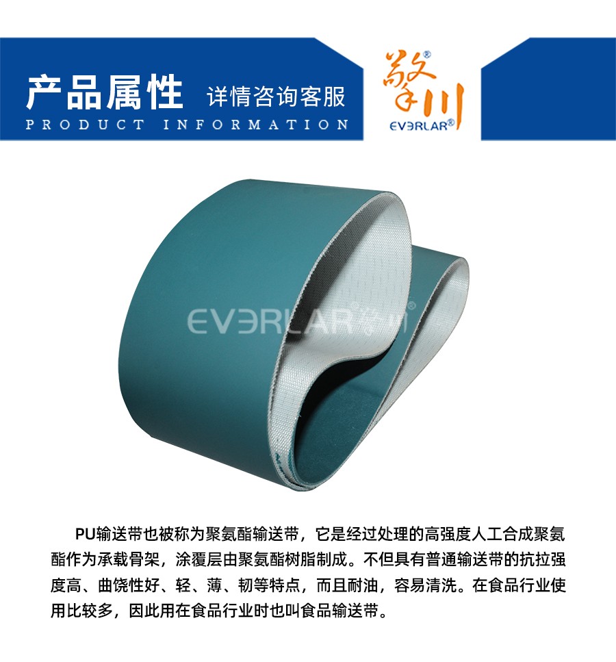 PU輸送帶也被稱為聚氨酯輸送帶,它是經(jīng)過(guò)處理的高強(qiáng)度人工合成聚氨酯作為承載骨架,涂覆層由聚氨酯樹(shù)脂制成。不但具有普通輸送帶的抗拉強(qiáng)度高、曲饒性好、輕、薄、韌等特點(diǎn),而且耐油,容易清洗。在食品行業(yè)使用比較多,因此用在食品行業(yè)時(shí)也叫食品輸送帶。
