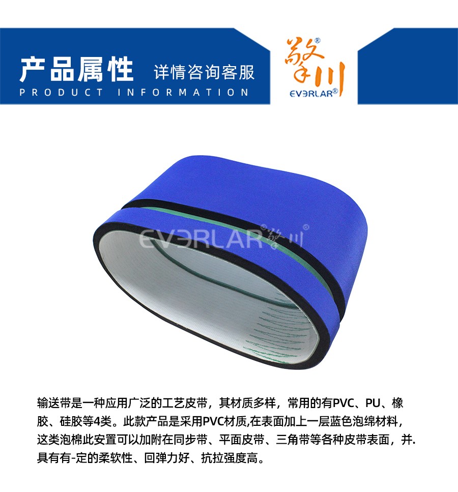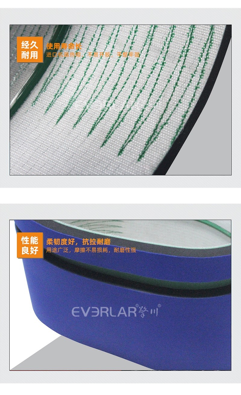 底帶厚度 | 0.7mm~4.2mm (PU) ,1.0~6.0 (PVC) ;1.5mm~5mm (硅膠)3.0mm~7.0mm ( 橡膠),需定制; 7.0mm以上(現貨供應) | 應用范圍 | 1、貼標機做卷瓶帶使用,壓緊標簽; 2、糊盒機..上用作壓盒帶; 3、電子元件的電鍍上用掩膜帶; |