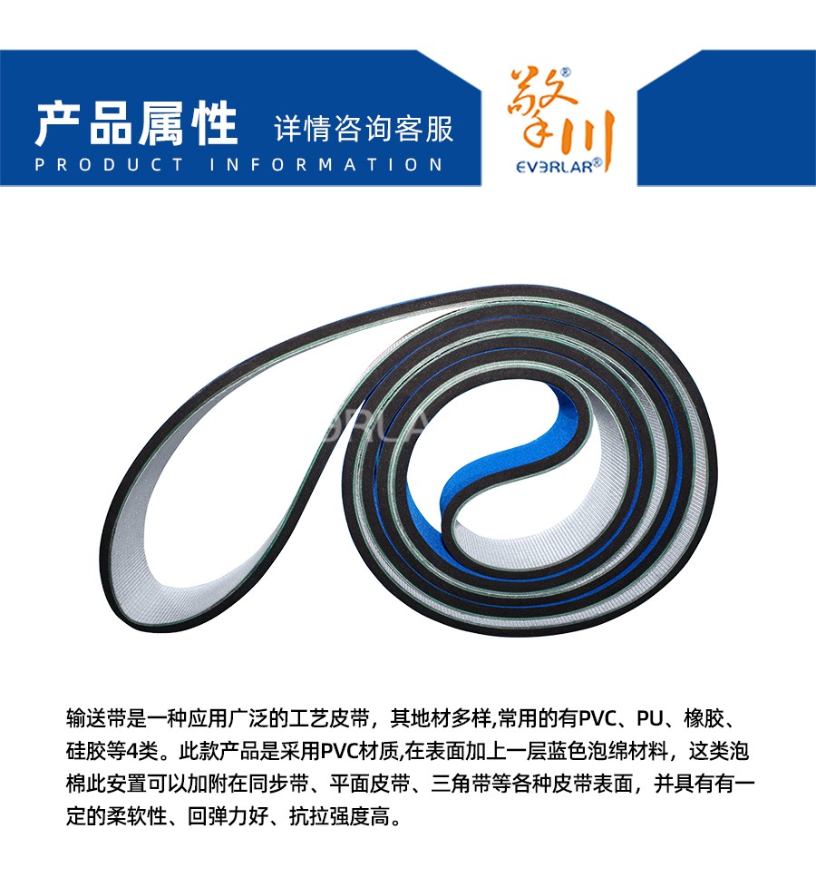 PVC輸送帶是由聚酯纖維布和聚氯乙烯膠構成的,選用優質全棉、尼龍、聚酯帆布作為帶芯,不容易變形。