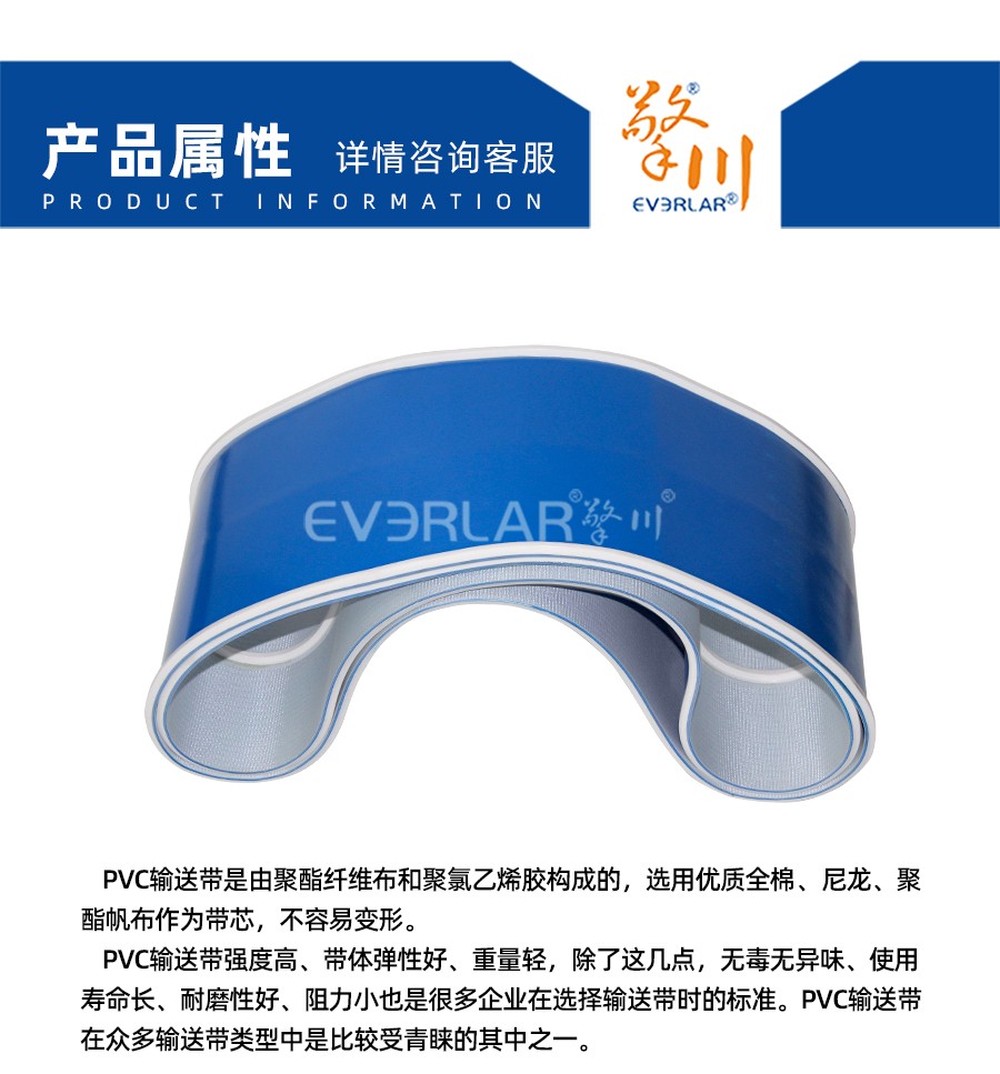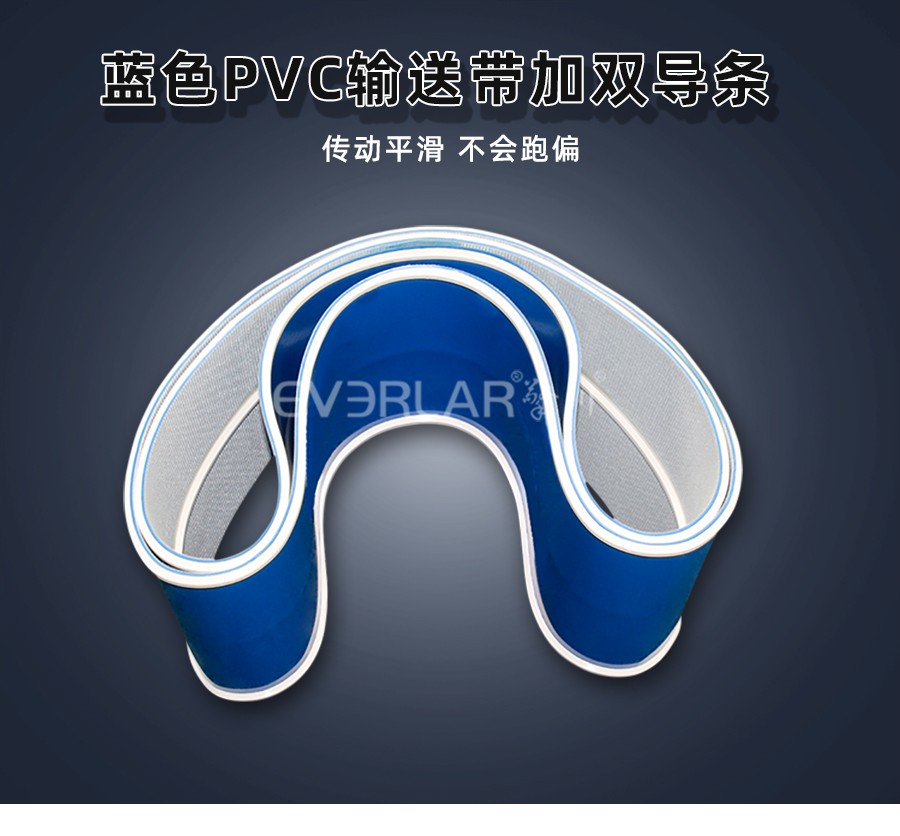 • 產品名稱:pvc輸送帶定制藍色加導條食品包裝機械輸送帶