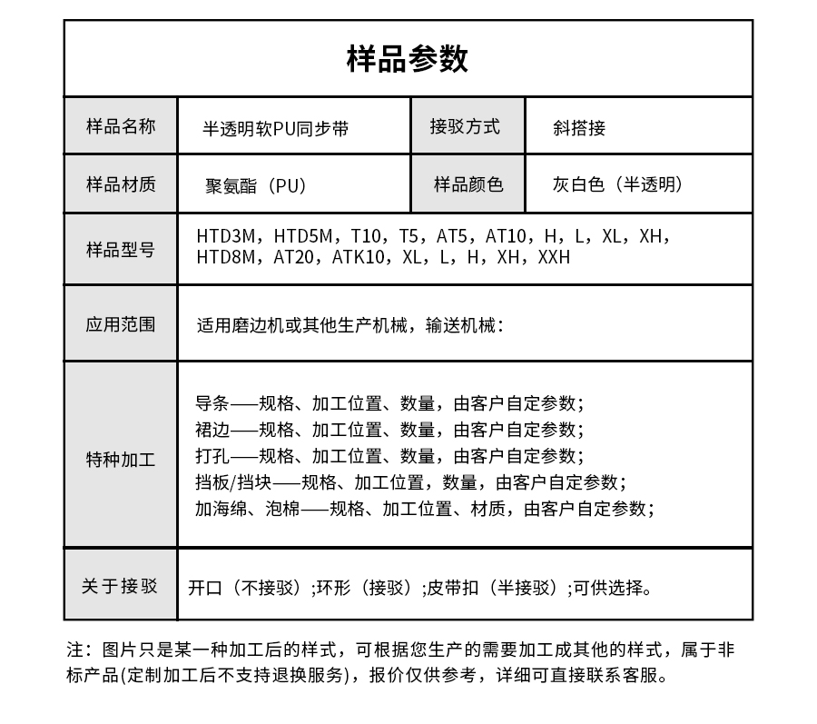 • 產(chǎn)品名稱:半透明軟PU同步帶磨邊機(jī)同步帶定制