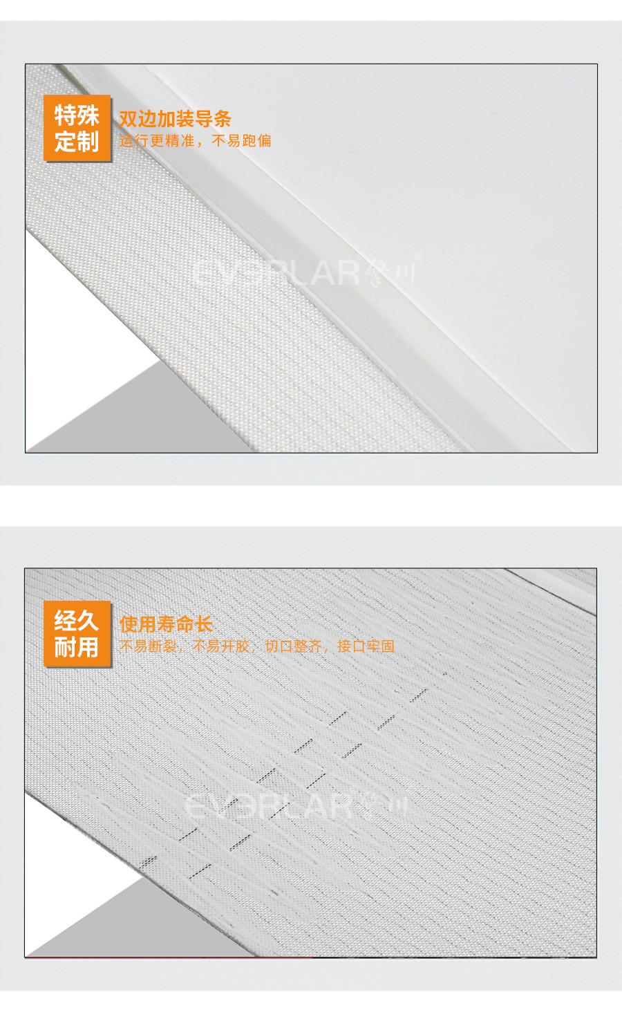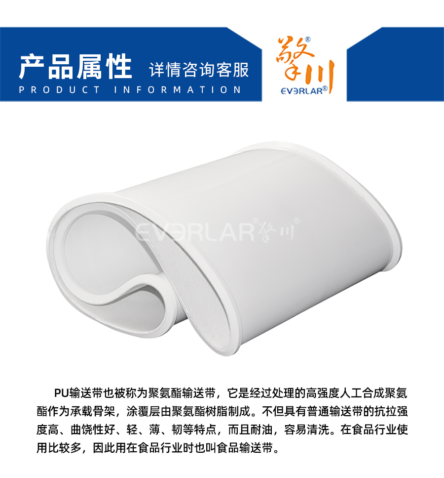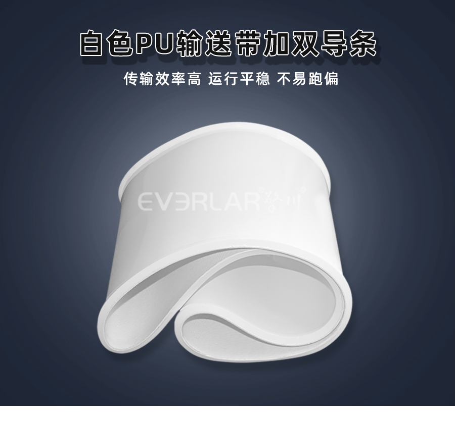 • 產品名稱:擎川everlar定制白色加雙導條聚氨酯PU食品輸送帶