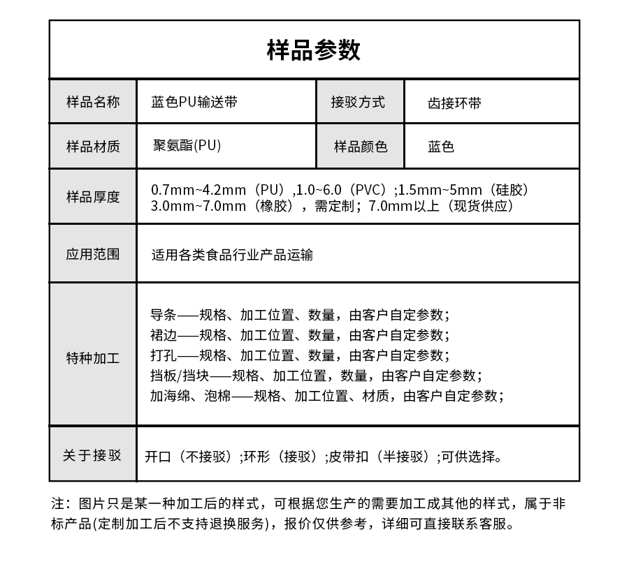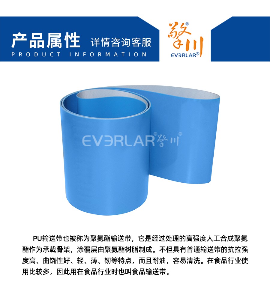 產(chǎn)品名稱:擎川everlar藍(lán)色PU輸送帶食品輸送帶