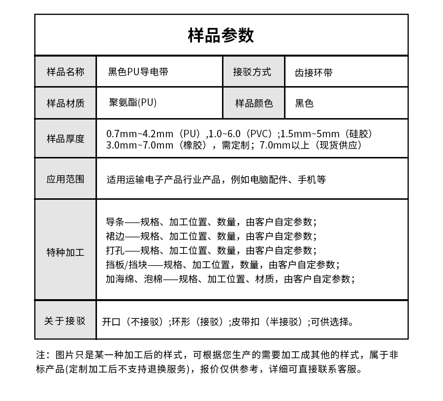 • 產品名稱:黑色PU輸送帶聚氨酯導電帶食品輸送帶