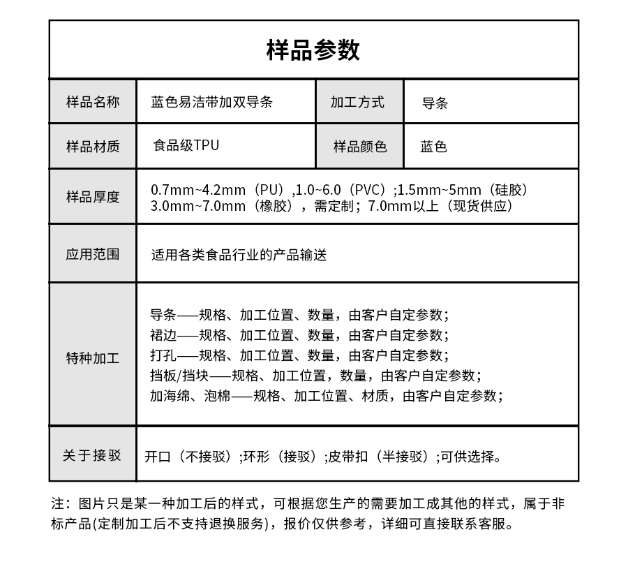 耐化學(xué)腐蝕、光滑抗粘、耐臟、易于清洗耐高溫,加裝導(dǎo)條提升編送能力。