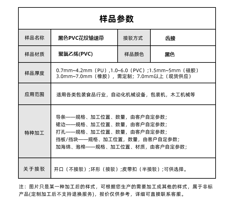 產(chǎn)品名稱:黑色花紋PVC輸送帶擎川everlar食品輸送帶定制