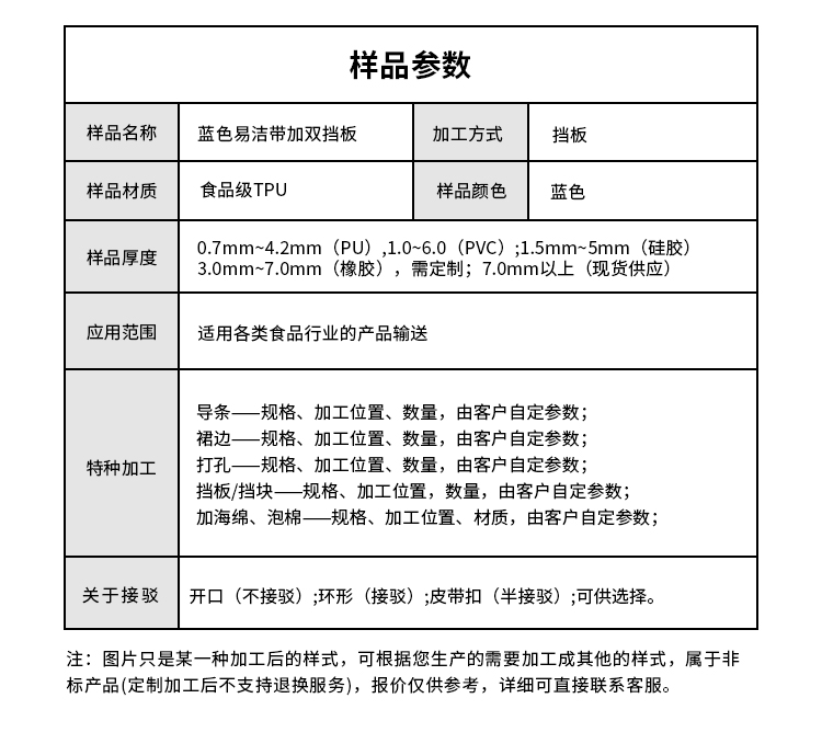 • 產品名稱:易清潔食品級輸送帶易潔皮帶肉類行業機械設備工業皮帶