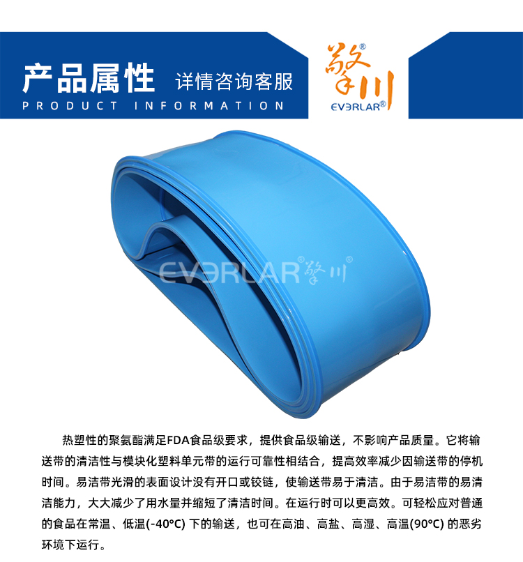 • 產品名稱:藍色易清潔帶加導條耐油易清潔食品運輸機工業皮帶定制