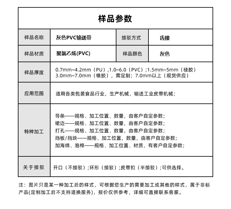 • 產品名稱:灰色PVC輸送帶耐磨平穩耐腐蝕包裝機械工業皮帶定制
