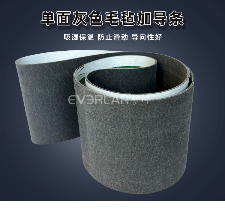 • 單面灰色毛氈輸送帶加導條耐磨耐高溫耐切割工業皮帶