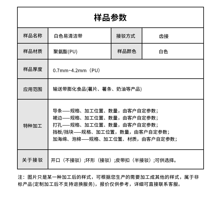 • 產品名稱:白色易清潔帶耐磨易清潔耐腐蝕工業皮帶