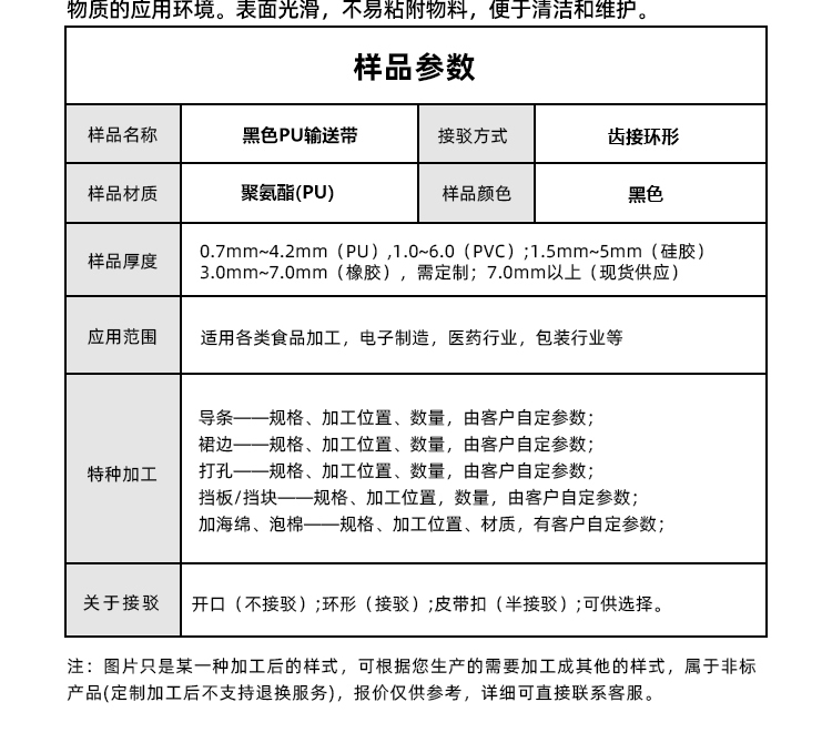 產(chǎn)品名稱:黑色PU輸送帶耐磨耐油耐腐蝕工業(yè)皮帶