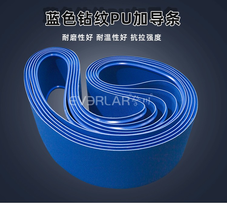 產(chǎn)品名稱:藍(lán)色PU鉆紋加導(dǎo)條耐磨防滑耐腐蝕工業(yè)皮帶