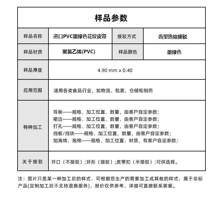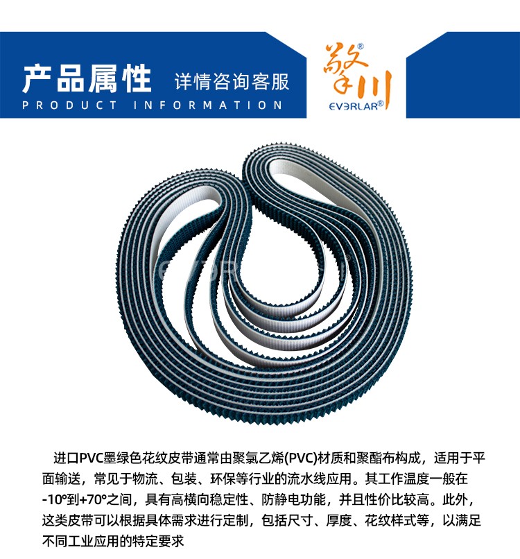 • 產品名稱:進口PVC墨綠色花紋皮帶耐磨防滑耐腐蝕工業皮帶