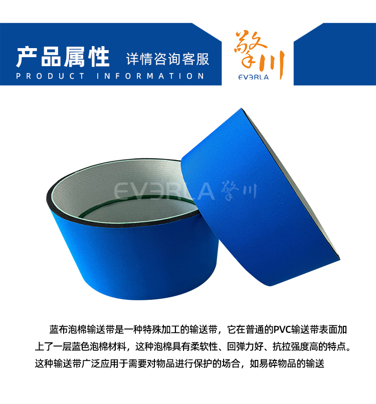 • 產品名稱:藍色泡棉輸送帶加導條耐磨降噪防滑工業皮帶