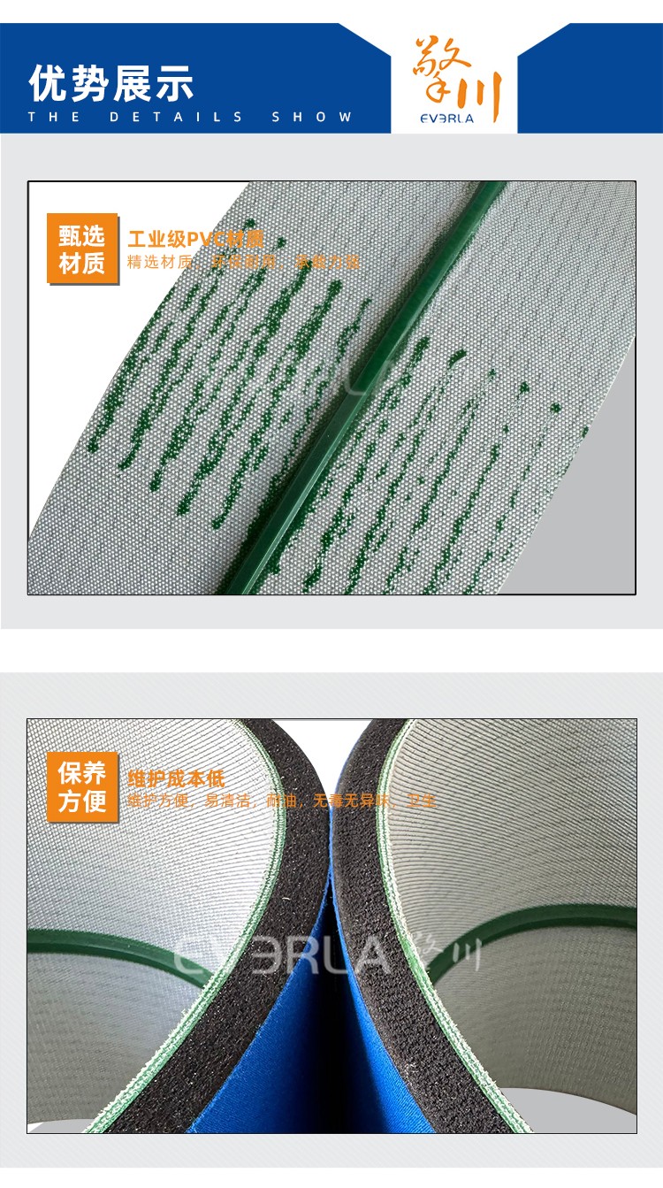 • 藍色泡棉輸送帶加導條耐磨降噪防滑工業皮帶
