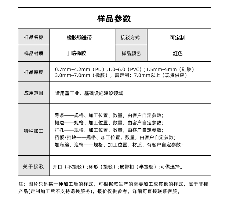• 產品名稱:橡膠輸送帶加導條耐磨防滑耐溫工業皮帶