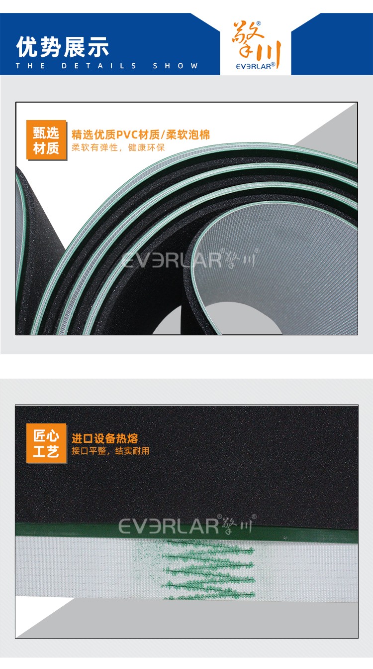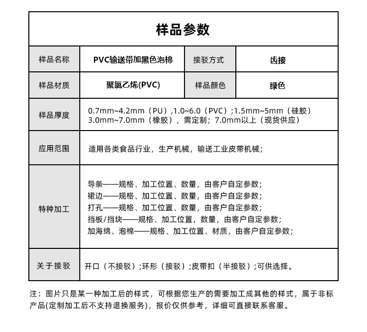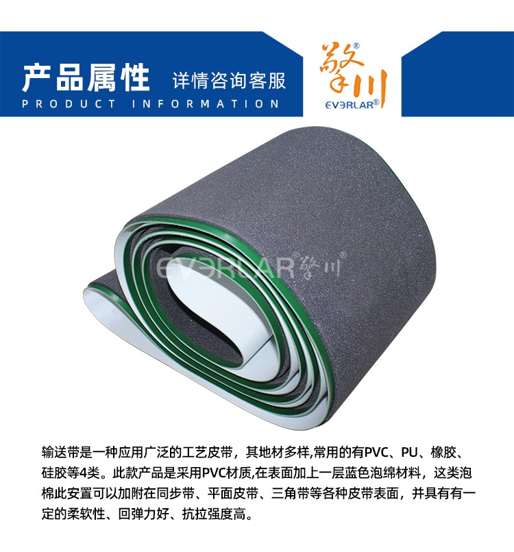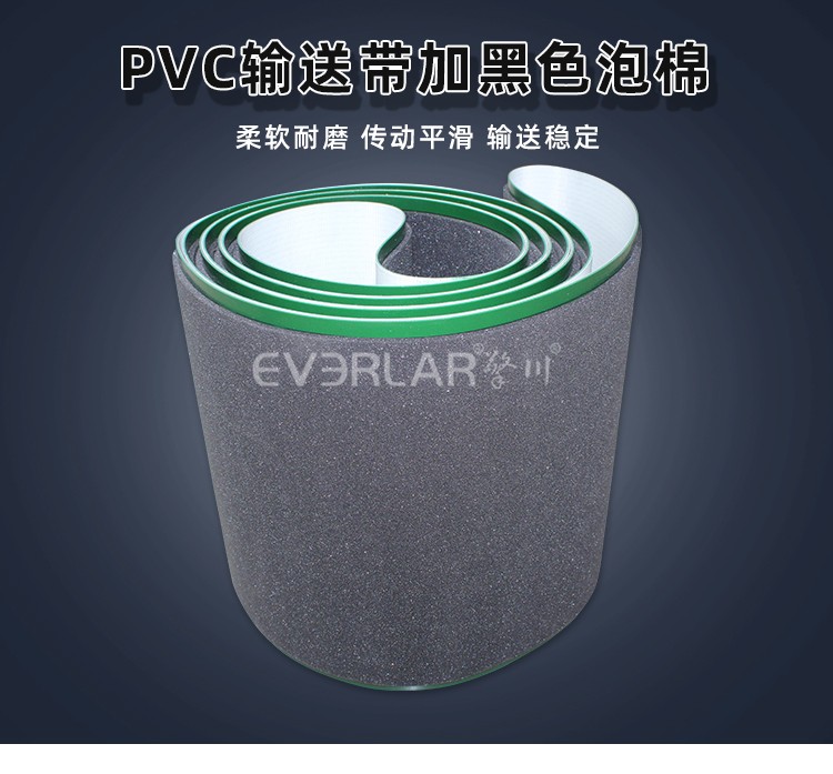 • 產品名稱: 綠色PVC輸送帶加黑色泡棉耐磨防靜電抗壓強度高工業皮帶