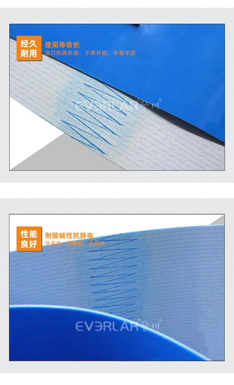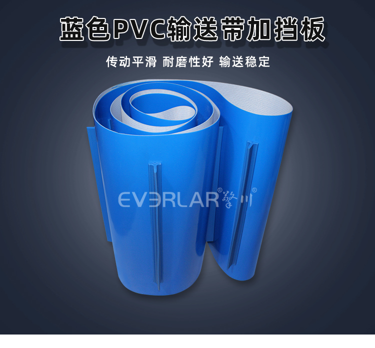 • 產品名稱:藍色PVC輸送帶加擋塊耐磨抗拉強度耐腐蝕工業皮帶