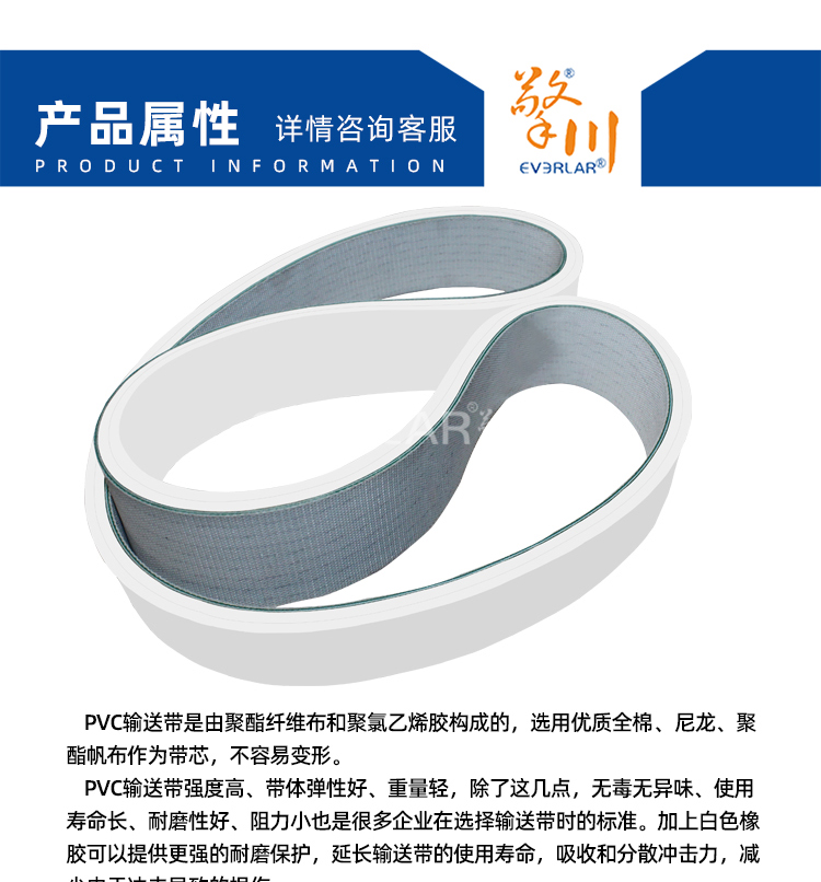• 產品名稱:PVC輸送帶加白色橡膠耐磨耐腐蝕耐低溫工業皮帶定制