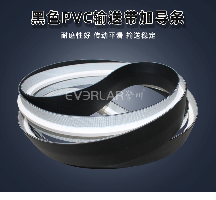• 產品名稱:黑色PVC輸送帶加導條耐油耐腐蝕耐高溫工業皮帶定制