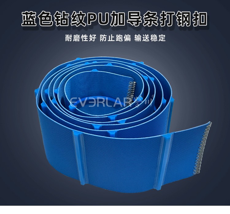 • 藍色鉆紋PU加導條打鋼扣耐磨耐油耐腐蝕工業皮帶
