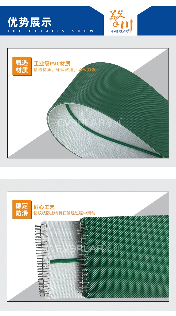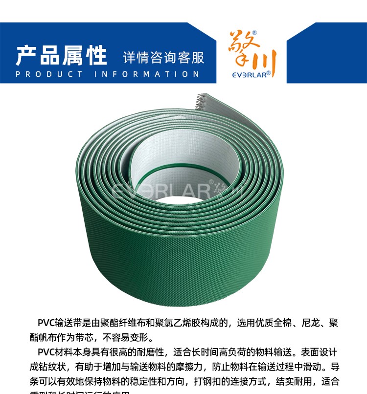 • 產(chǎn)品名稱:鉆紋PVC加導條打鋼扣耐磨平穩(wěn)防滑工業(yè)皮帶