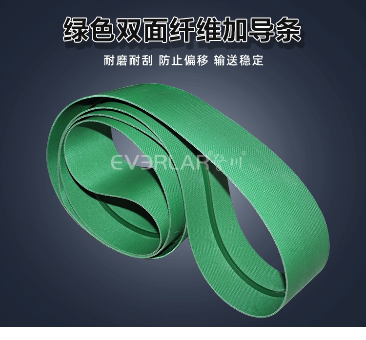 • 雙面纖維輸送帶綠色加導條防偏移包裝行業物料傳送皮帶定制