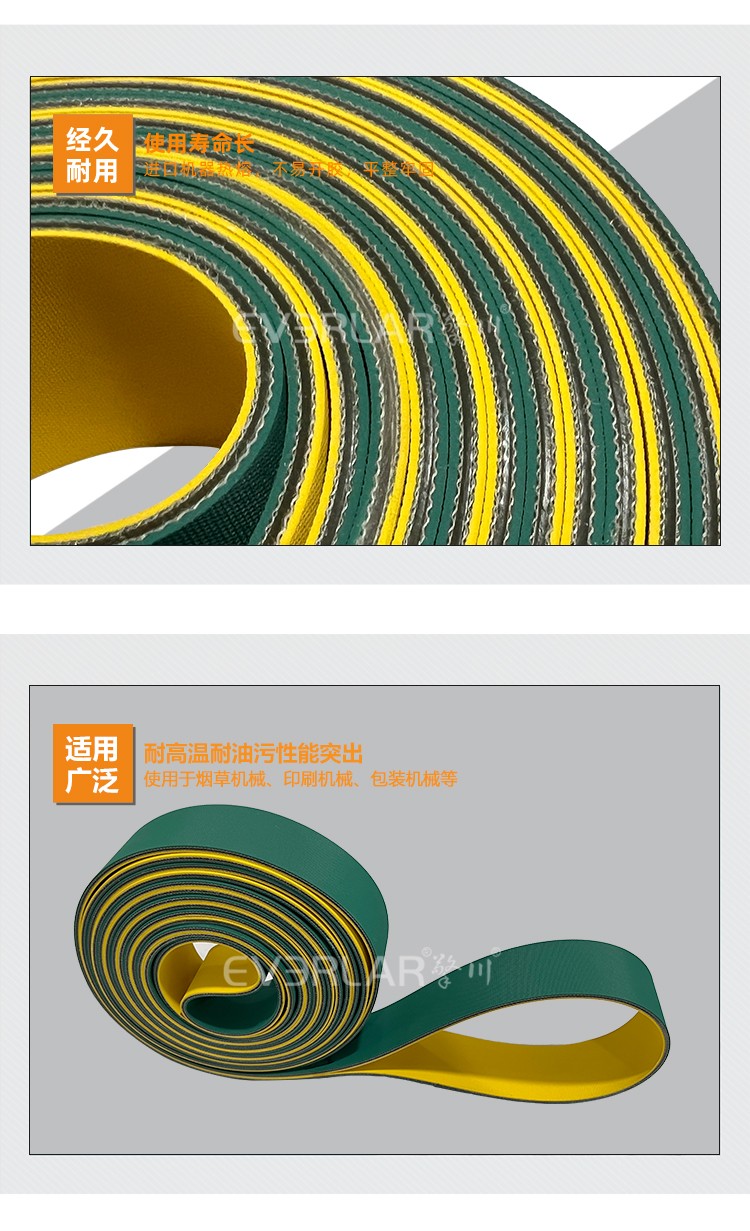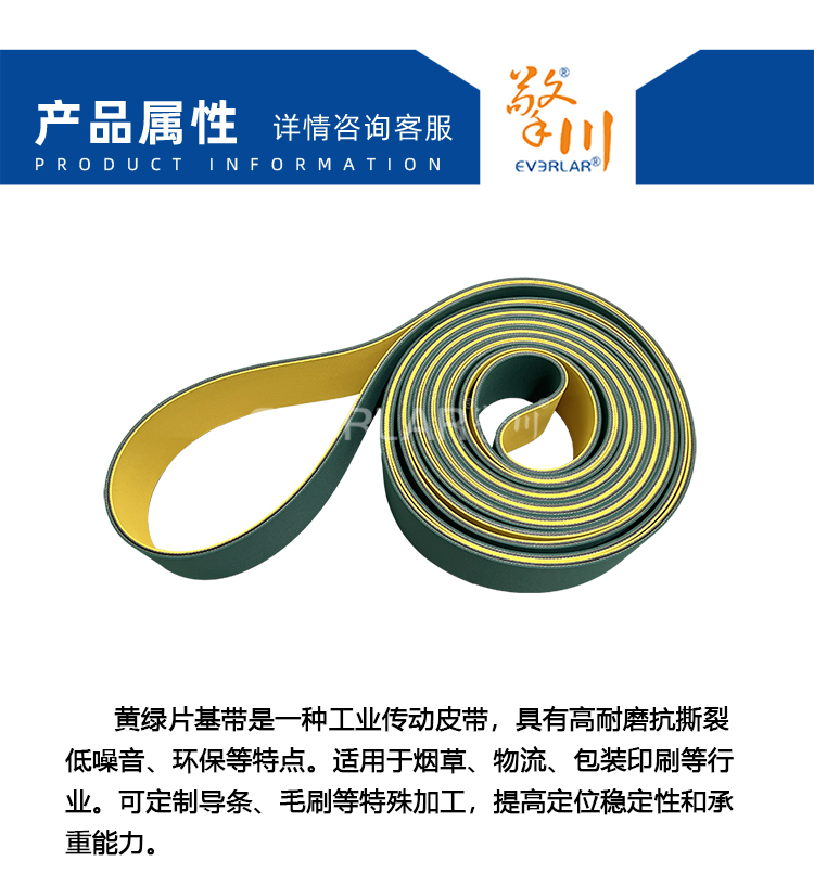 • 產品名稱:黃綠片基帶抗拉防滑印刷紡織行業高速傳動平皮帶工業廠家定制