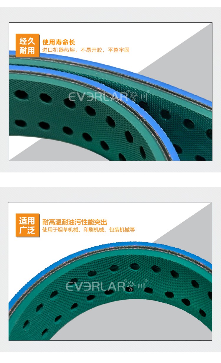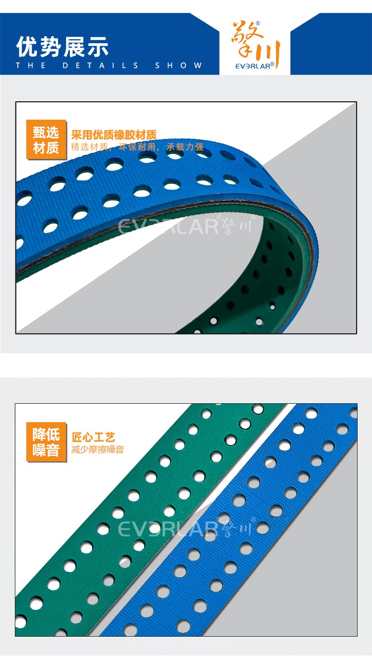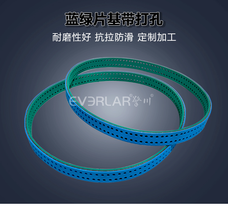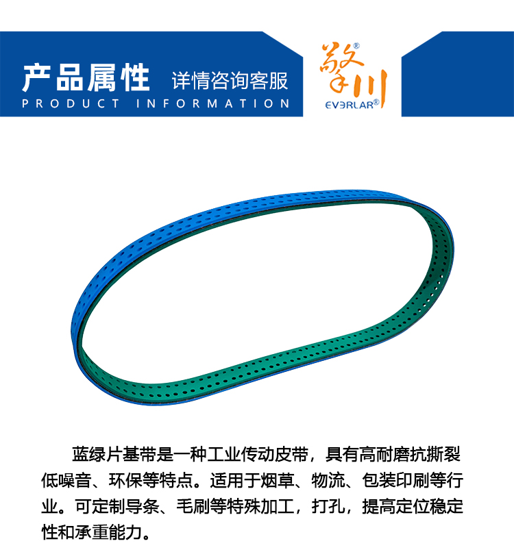 • 產(chǎn)品名稱:藍(lán)綠片基帶打孔耐磨防滑物流包裝行業(yè)分揀倉儲傳動平皮帶擎川定制