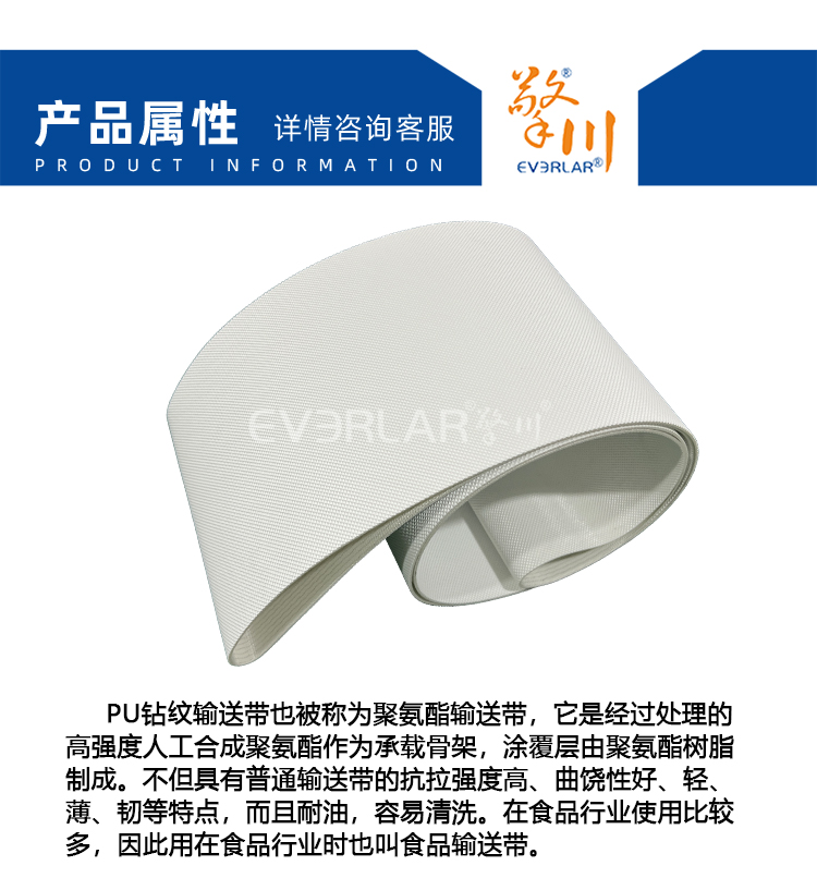 • 產品名稱:食品級白色PU鉆石紋輸送帶耐磨防滑適配餅干生產線包裝機皮帶