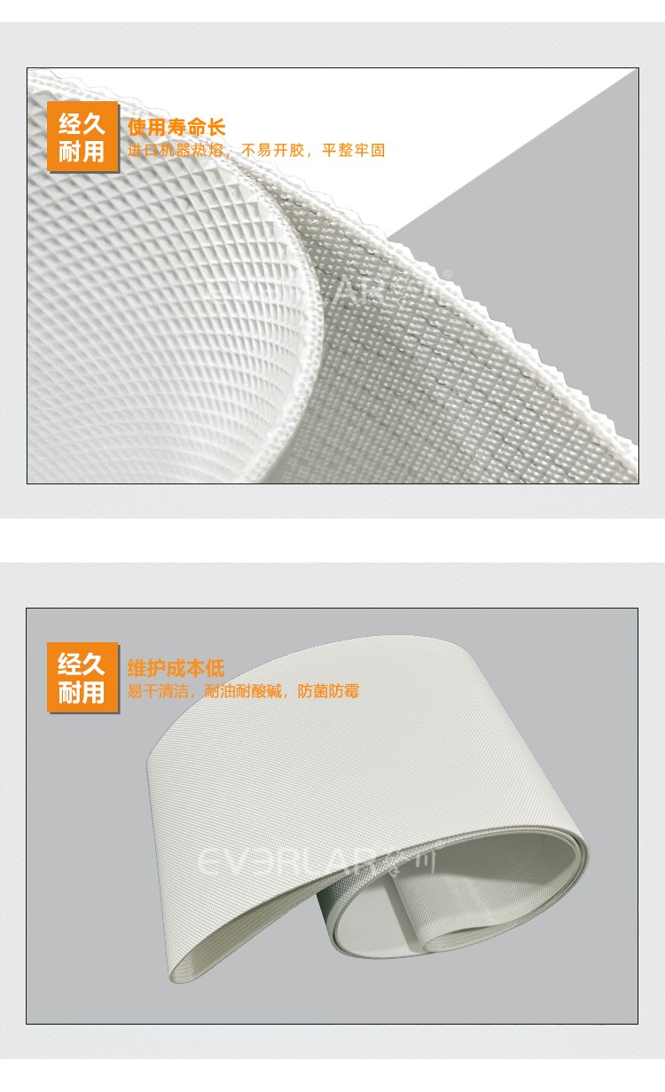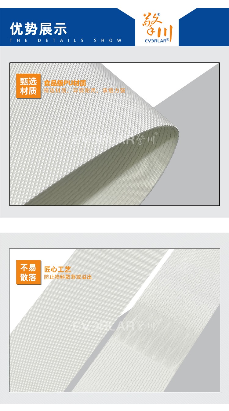• 食品級白色PU鉆石紋輸送帶耐磨防滑適配餅干生產線包裝機皮帶