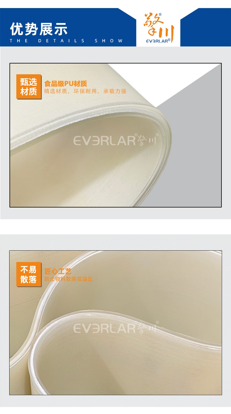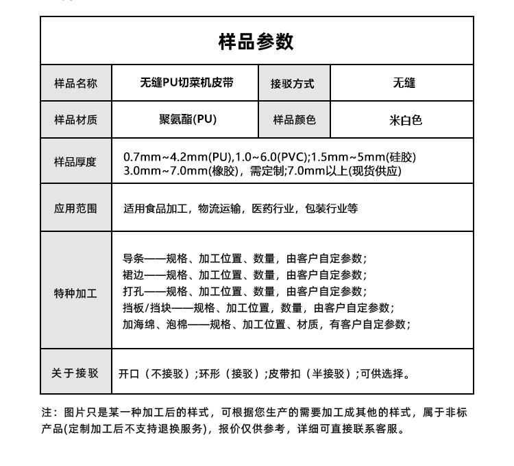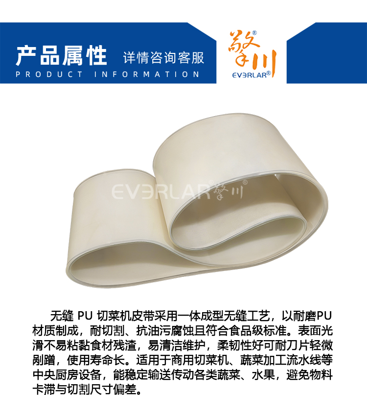 • 產品名稱:無縫PU切菜機皮帶抗撕裂防油污中央廚房全自動切菜設備輸送帶