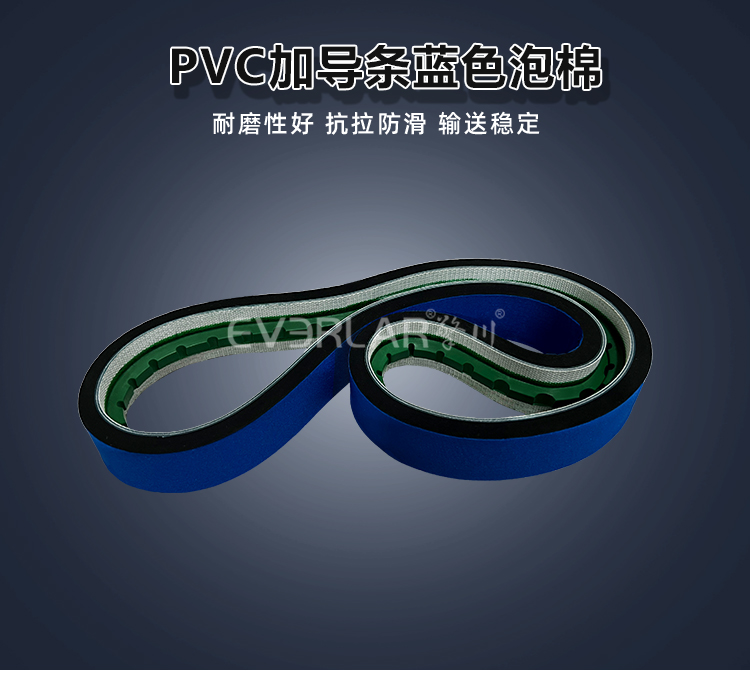 • 產(chǎn)品名稱:PVC藍布泡棉導(dǎo)條輸送帶耐磨緩沖包裝物流包裝機輸送線皮帶