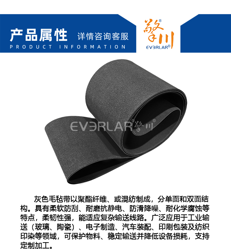 產(chǎn)品名稱:雙面毛氈輸送帶灰色防刮耐磨電子汽車裝配流水線工業(yè)皮帶