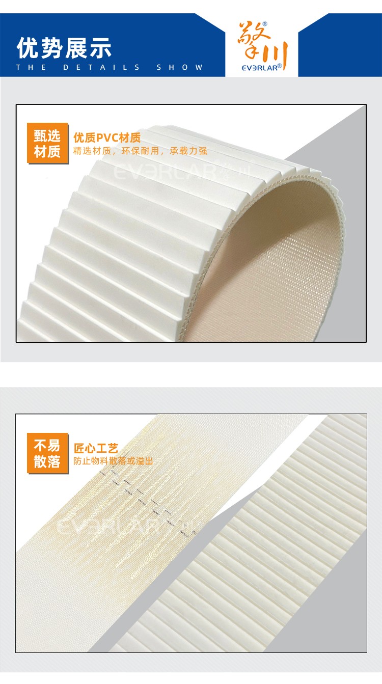 • 白色PVC搓衣板輸送帶防滑耐磨工業皮帶食品包裝物流行業傳送帶
