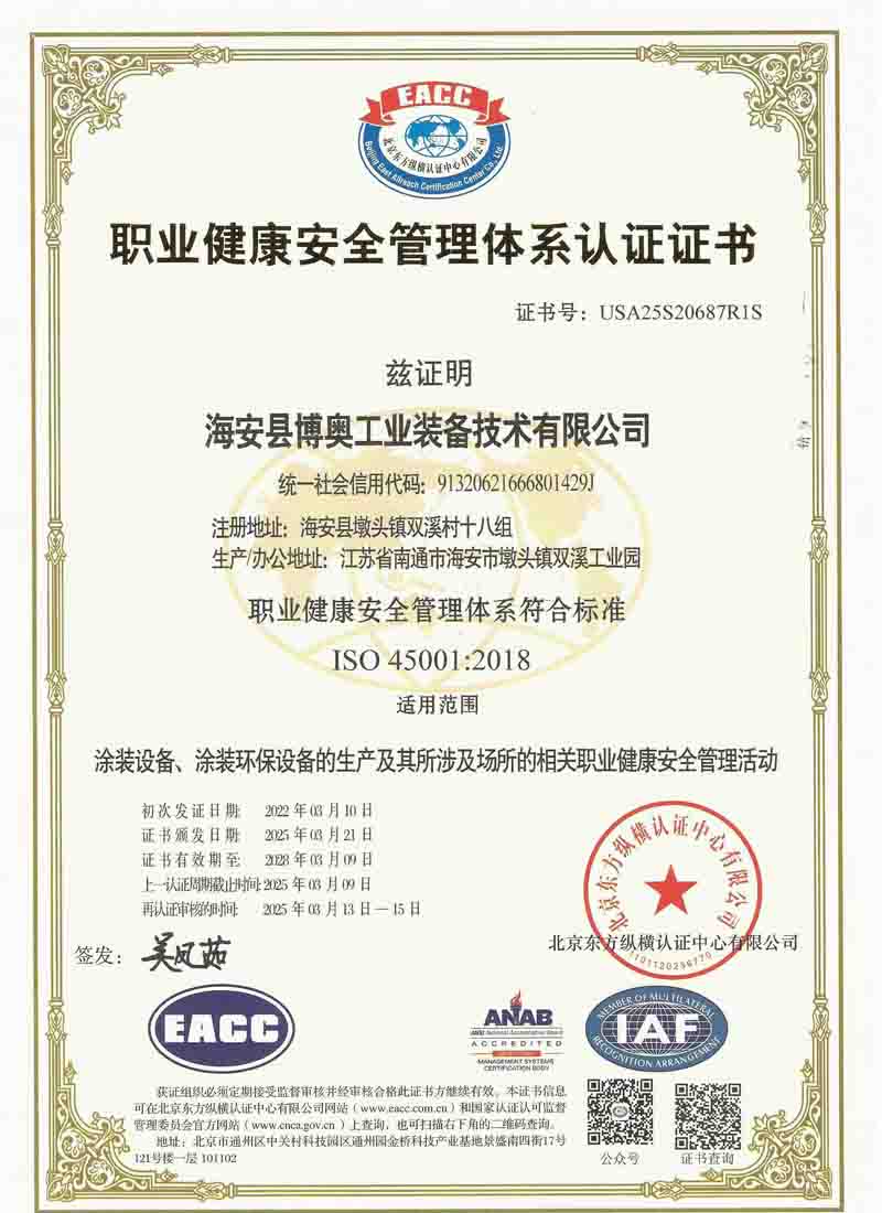 職業(yè)健康安全管理體系認(rèn)證證書